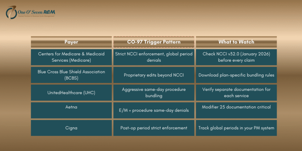 The co 97 denial code Medicare triggers most often come from strict NCCI enforcement and global period violations. Medicare doesn’t bend on these rules. Commercial payers have their own quirks. The co 97 denial code BCBS issues often stem from proprietary edits that go beyond standard NCCI tables.